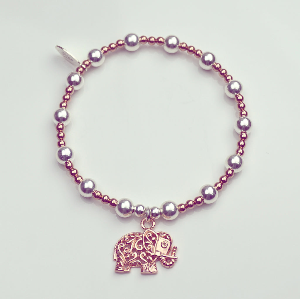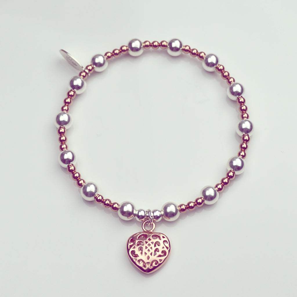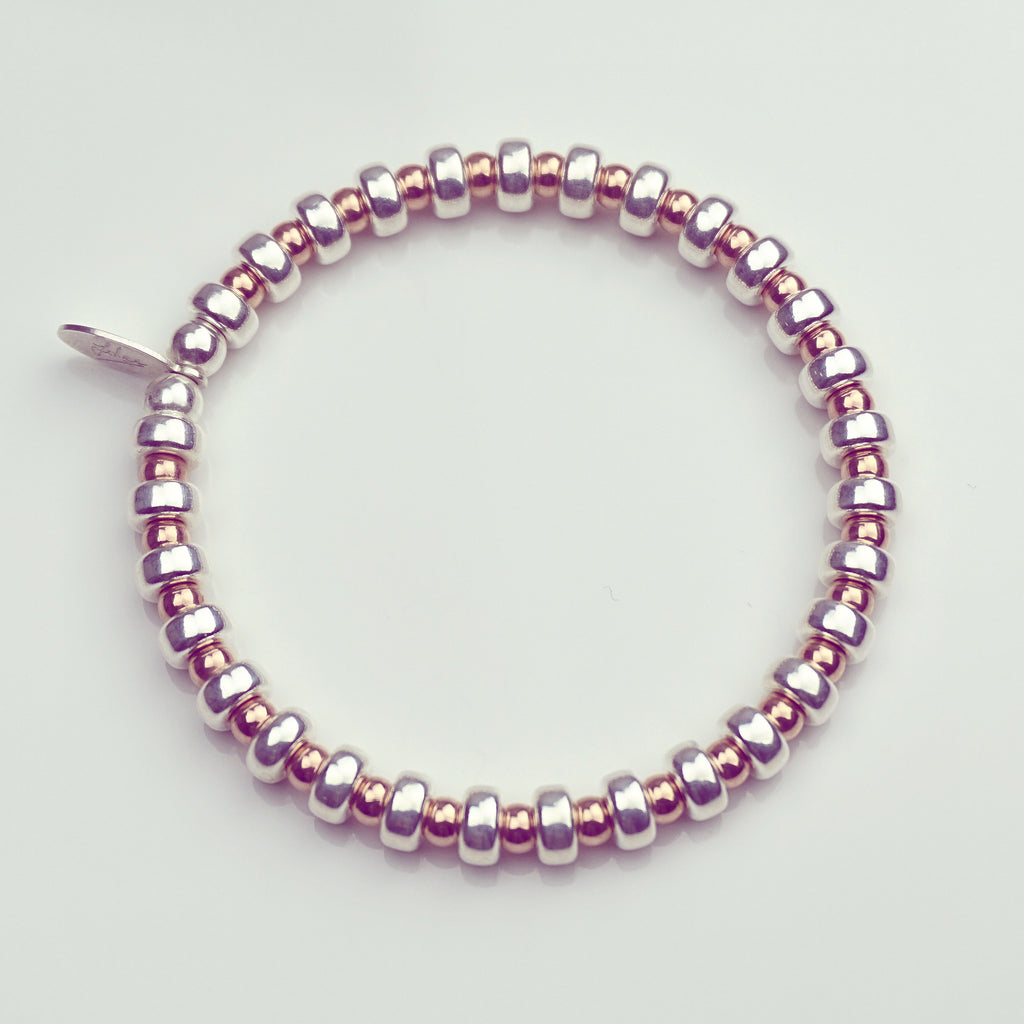 Sterling Silver Disc & Rose Gold Filled Bead Bracelet