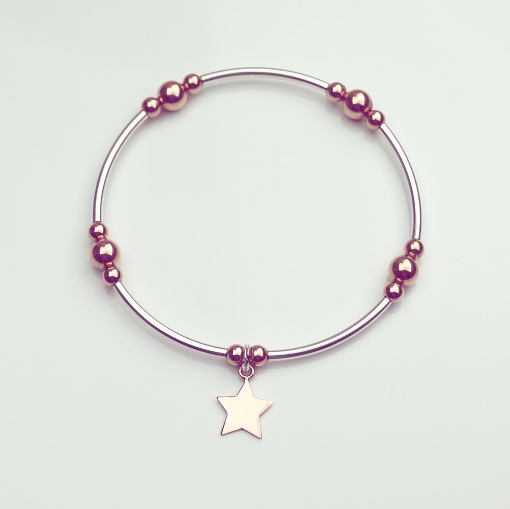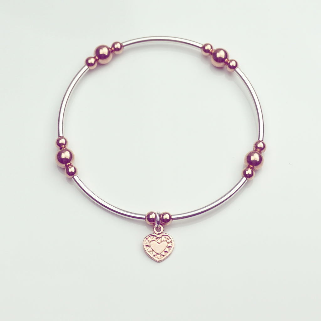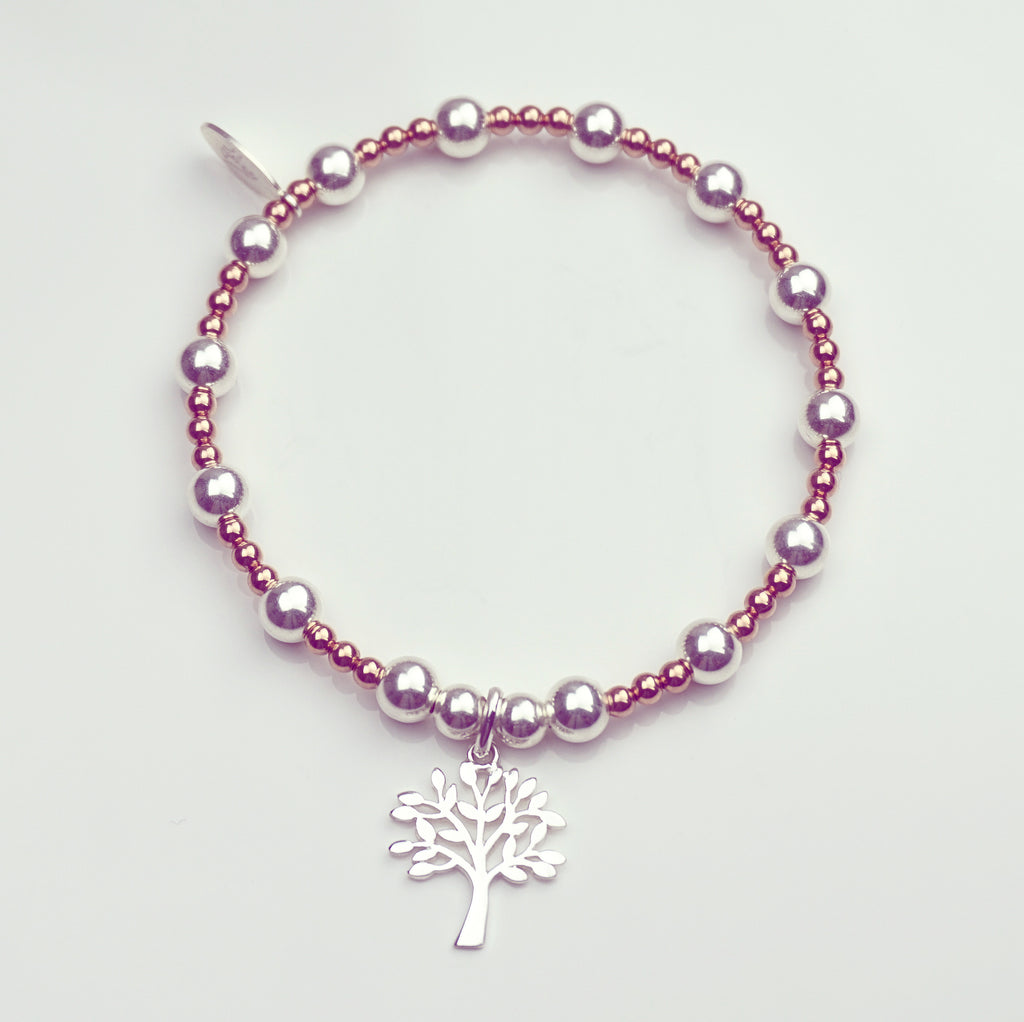 Sterling Silver Disc & Rose Gold Filled Bead Bracelet