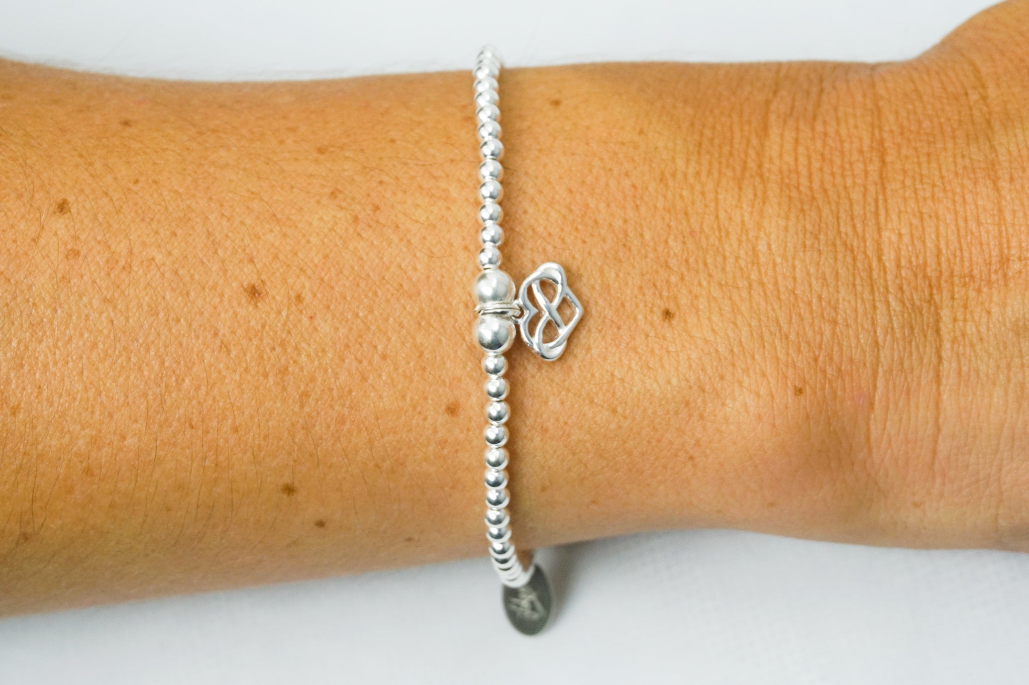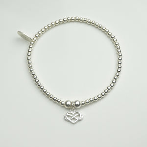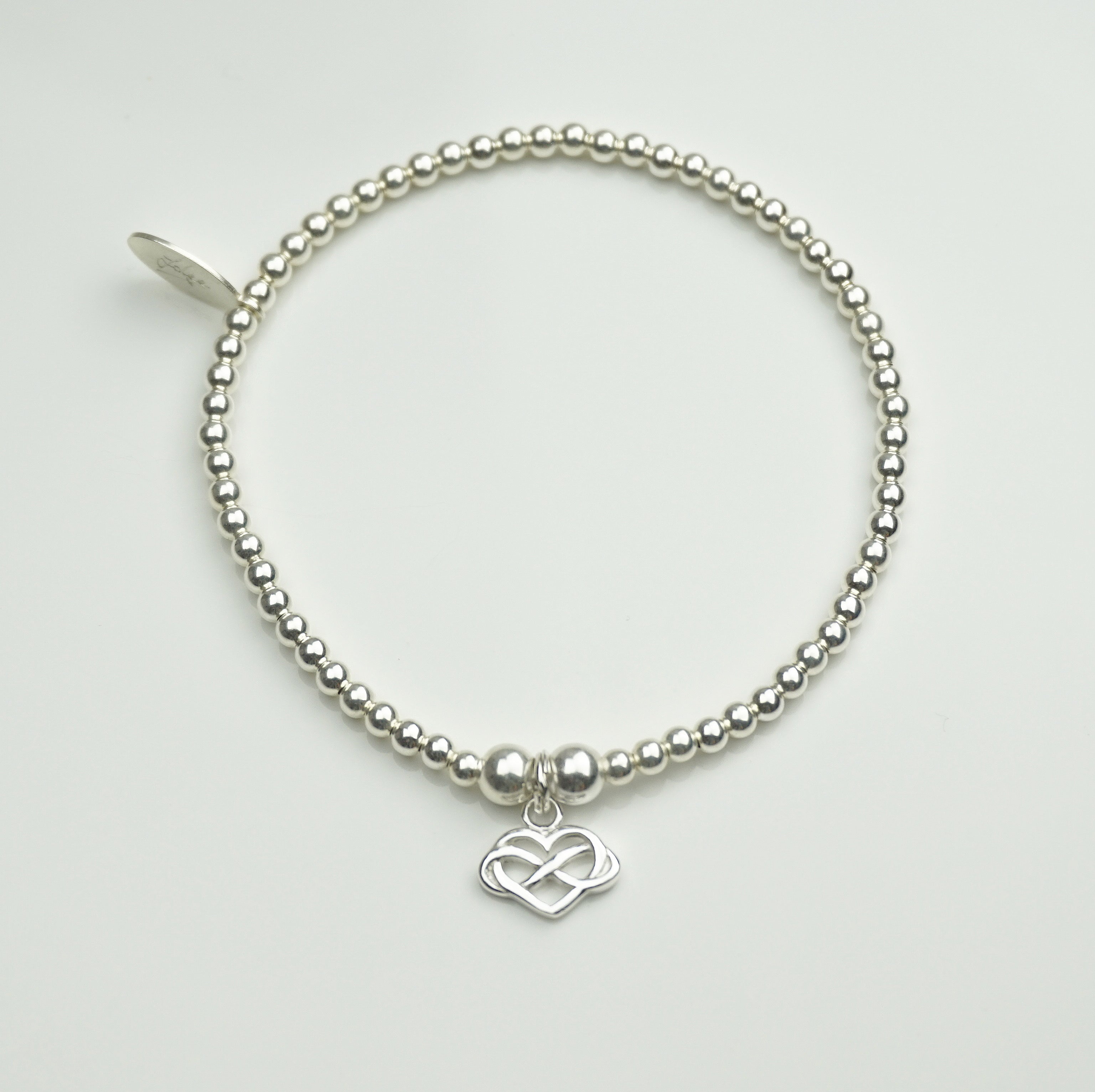 Infinity Heart charm on a 3mm Sterling Silver bead bracelet