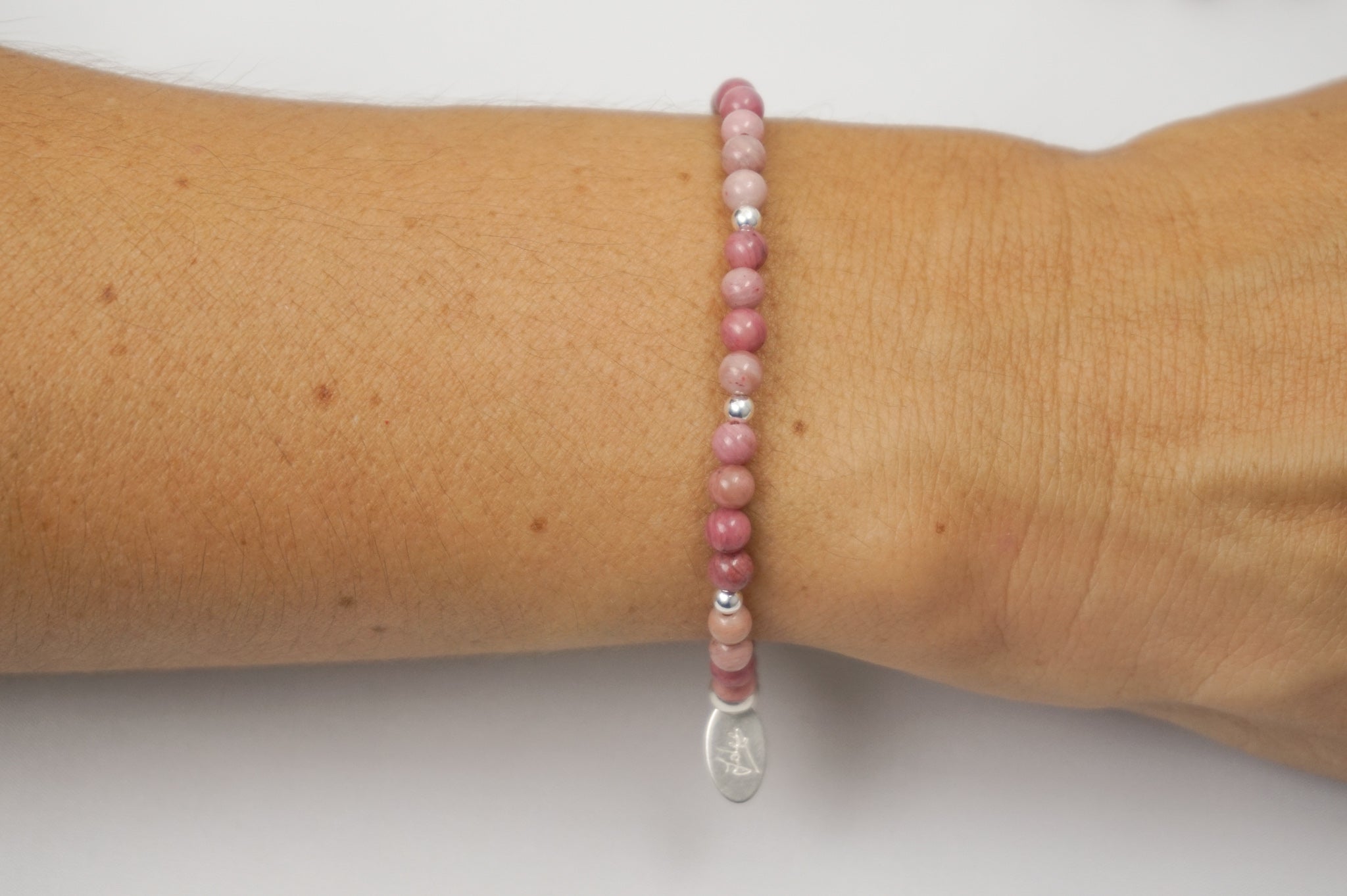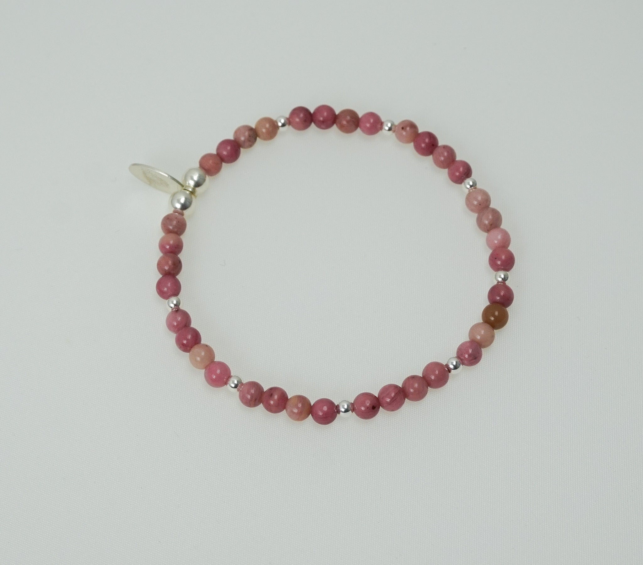 4mm Rhodonite and 3mm occasional Sterling Silver bead bracelet