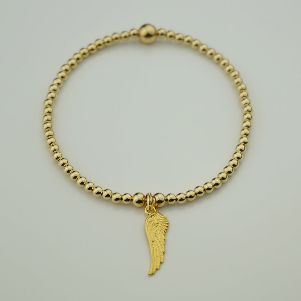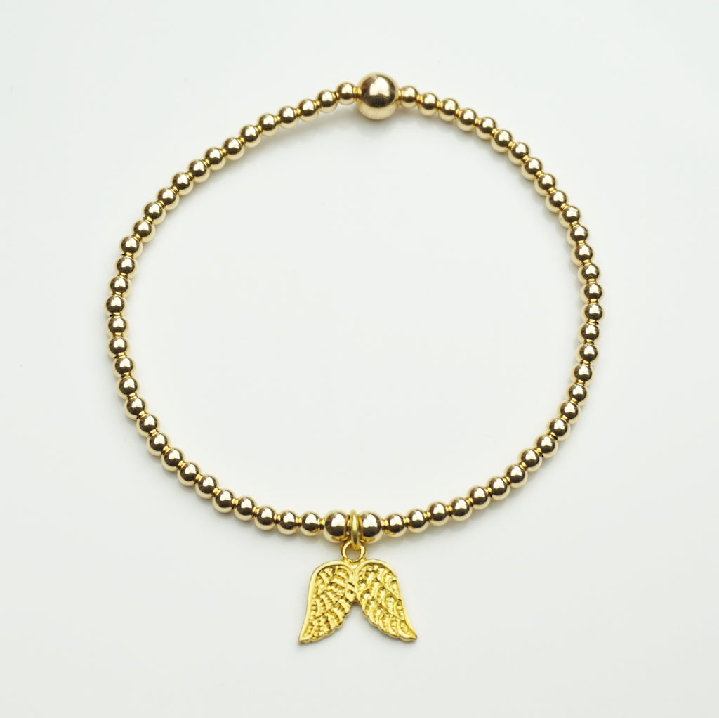 Yellow Gold Single Angel Wing Noodle Bracelet