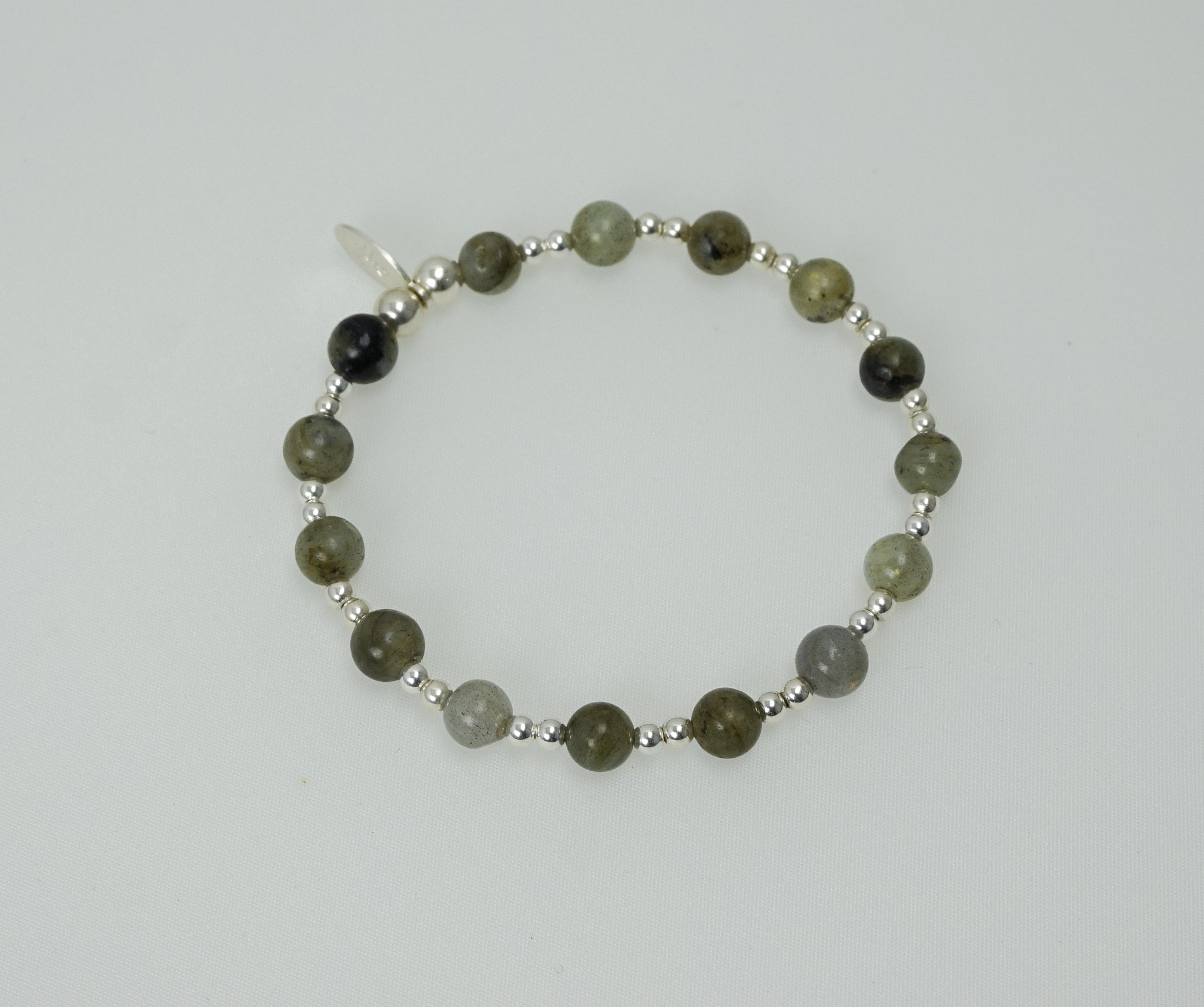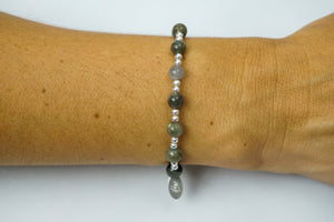 6mm Labradorite and Sterling Silver Mix bead bracelet.