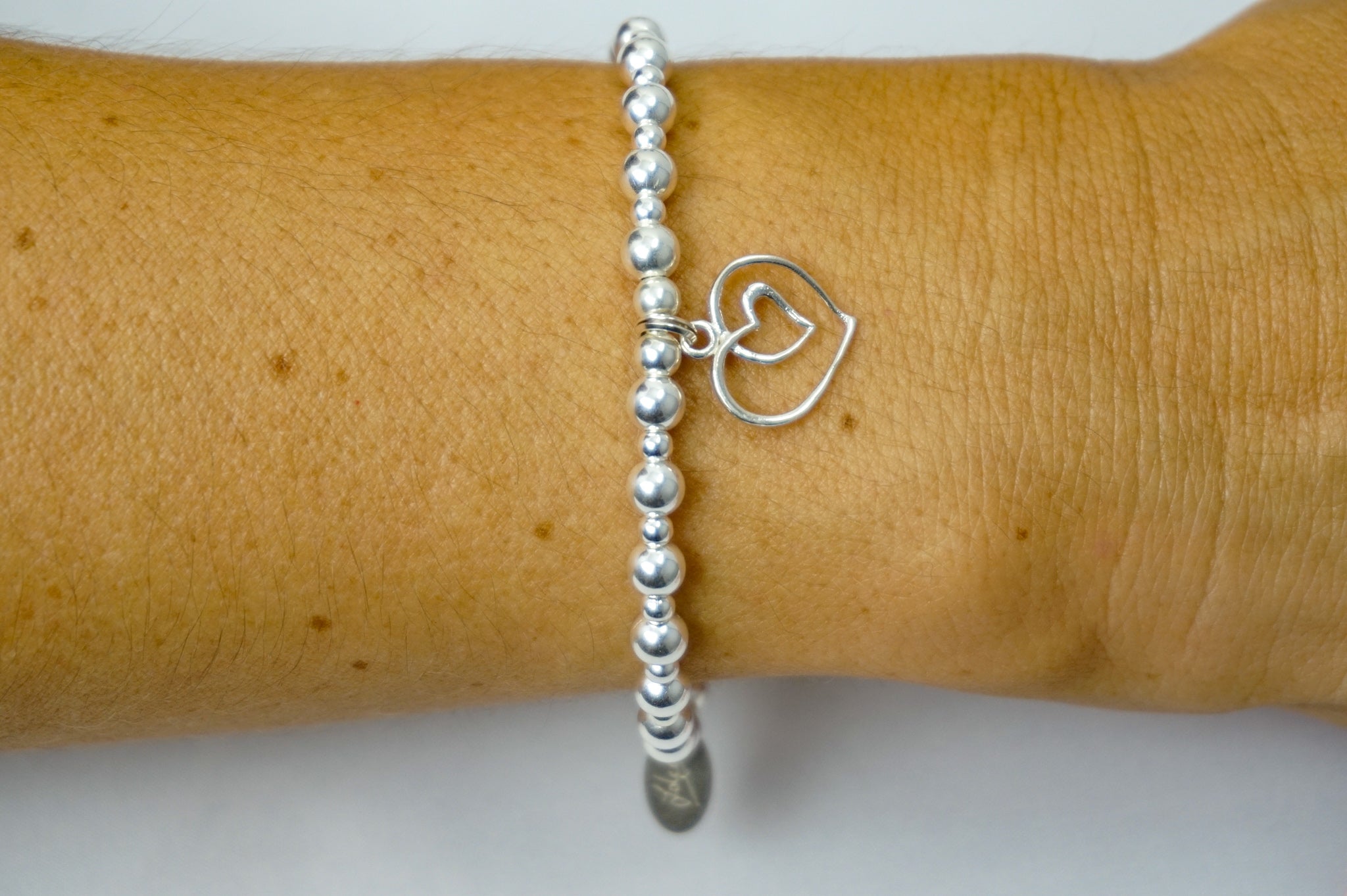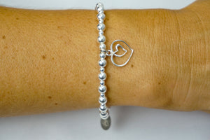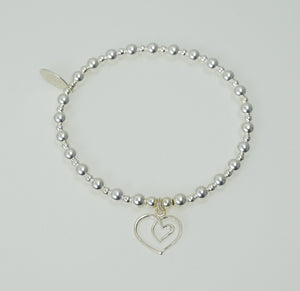 Multi Open Heart charm on a 5mm & 3mm Sterling Silver bead bracelet