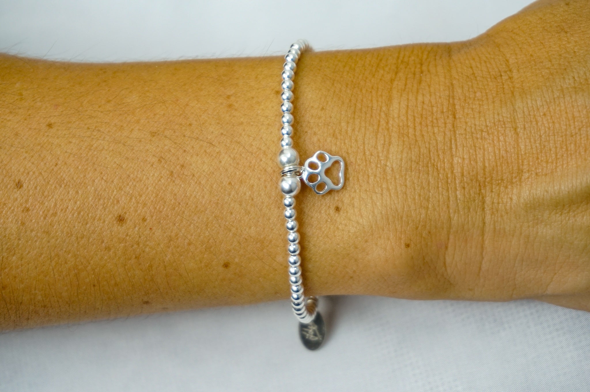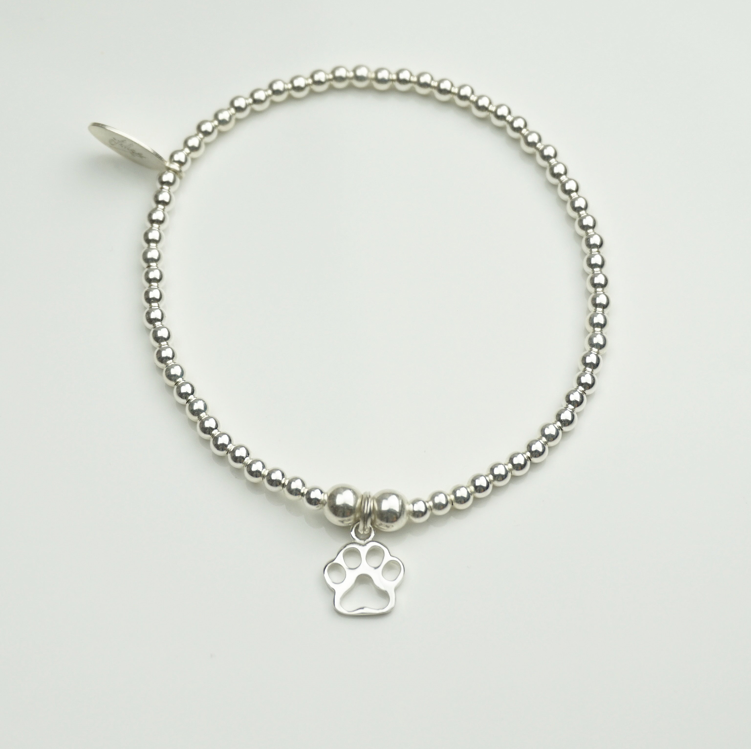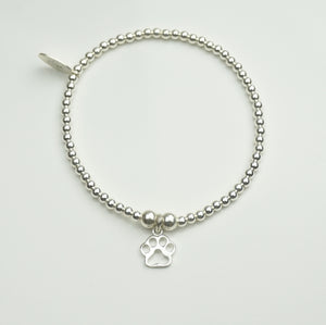 Paw Print charm on a 3mm Sterling Silver bead bracelet