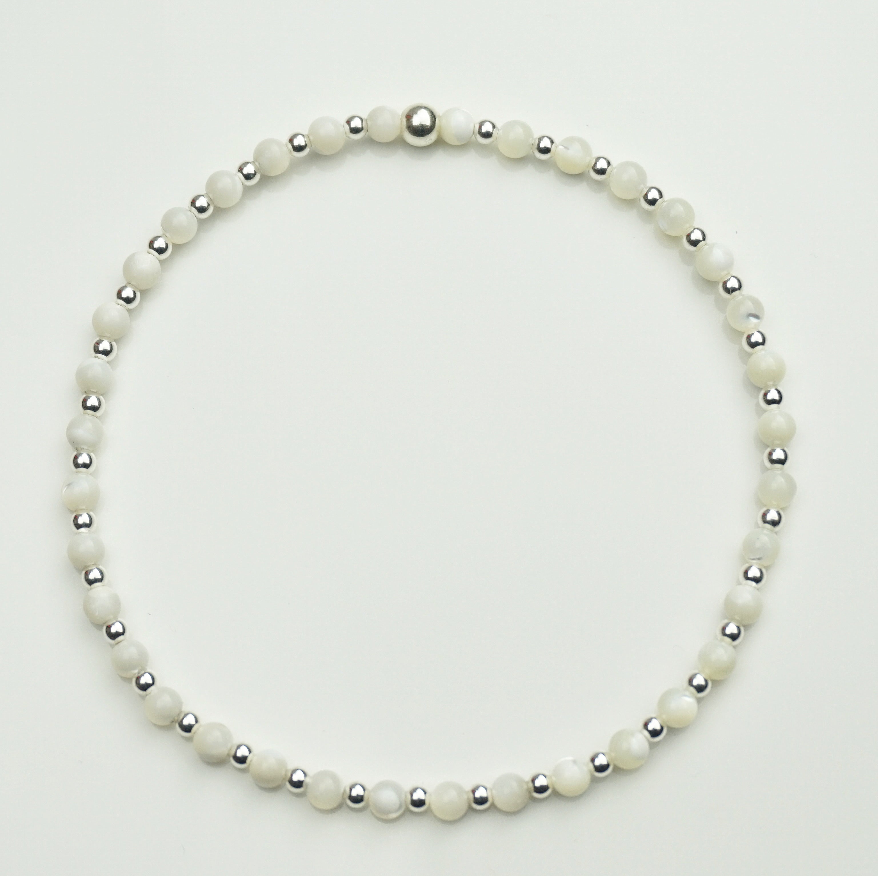 4mm Mother of Pearl and 3mm Sterling Silver Anklet