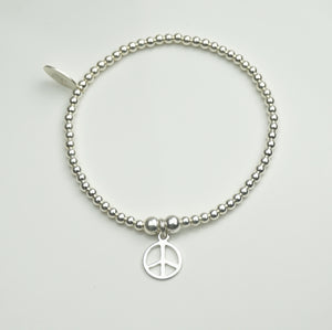 Peace Sign charm on a 3mm Sterling Silver bead bracelet