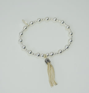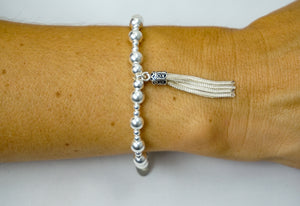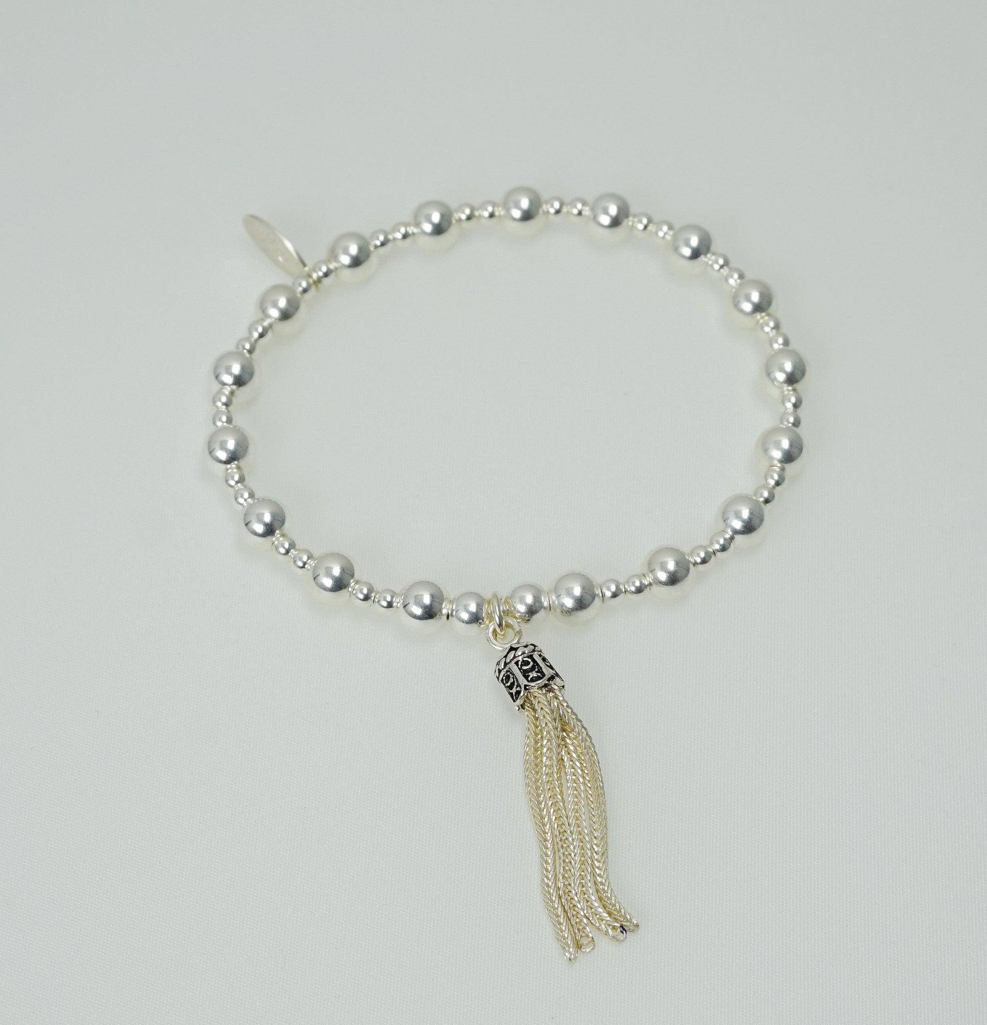Tassel charm on a 6mm & 2x3mm Sterling Silver bead bracelet