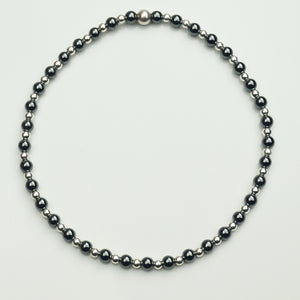 4mm Black Hematite and 3mm Sterling Silver Anklet