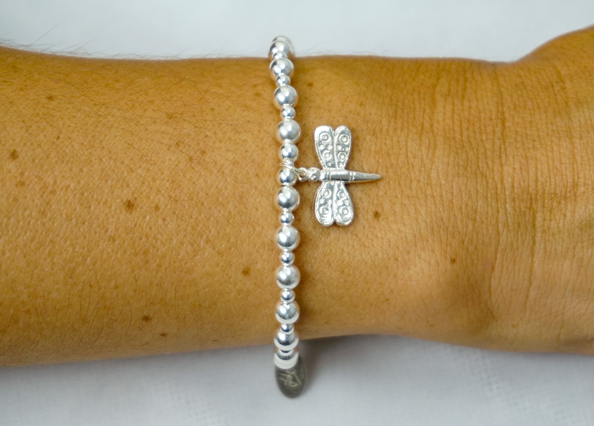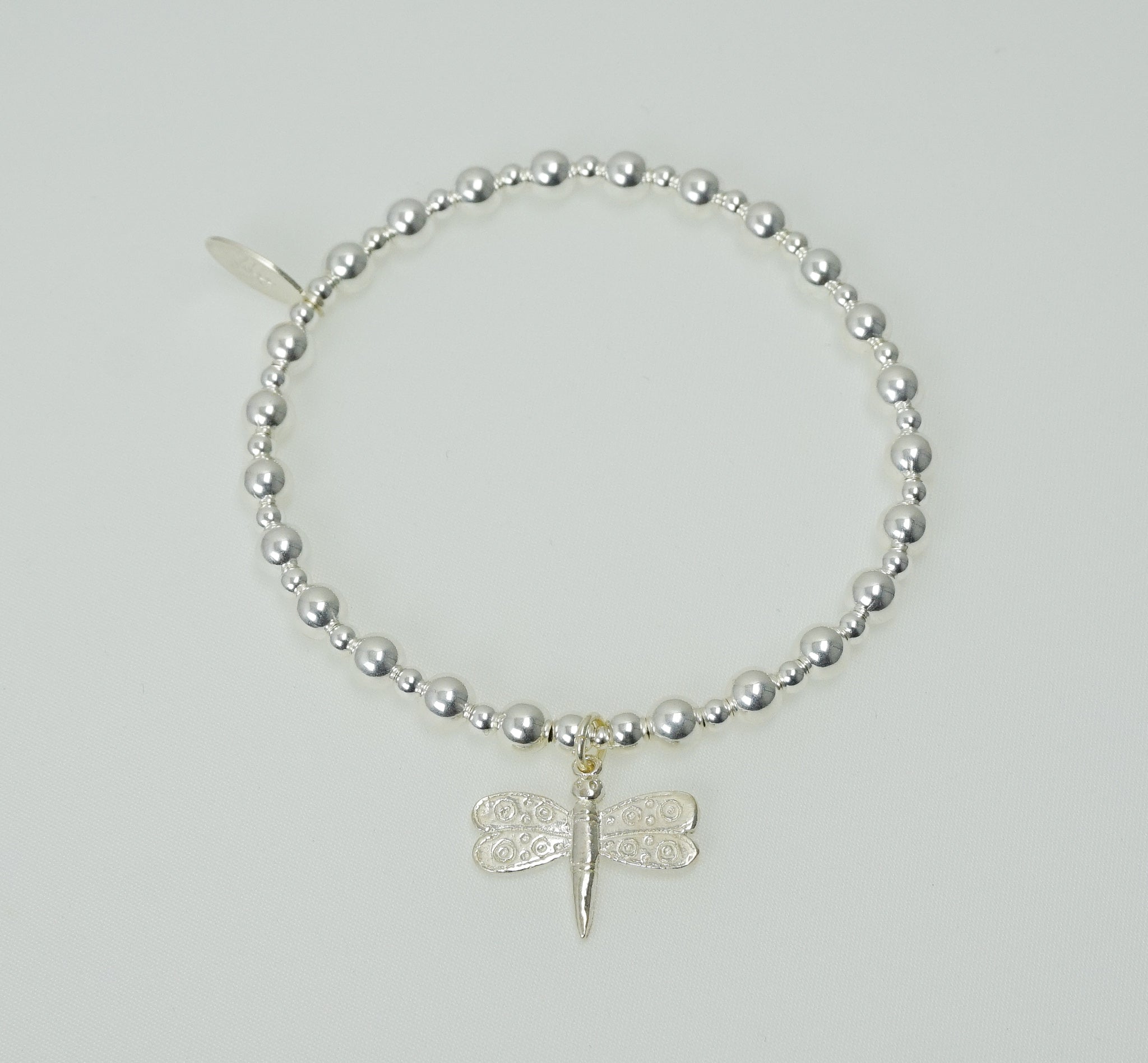Dragonfly charm on a 5mm & 3mm Sterling Silver bead bracelet