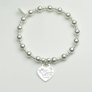 Mother and Daughter charm on a 6mm & 2x3mm Sterling Silver bead bracelet