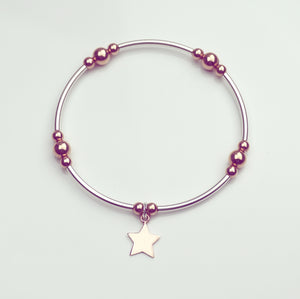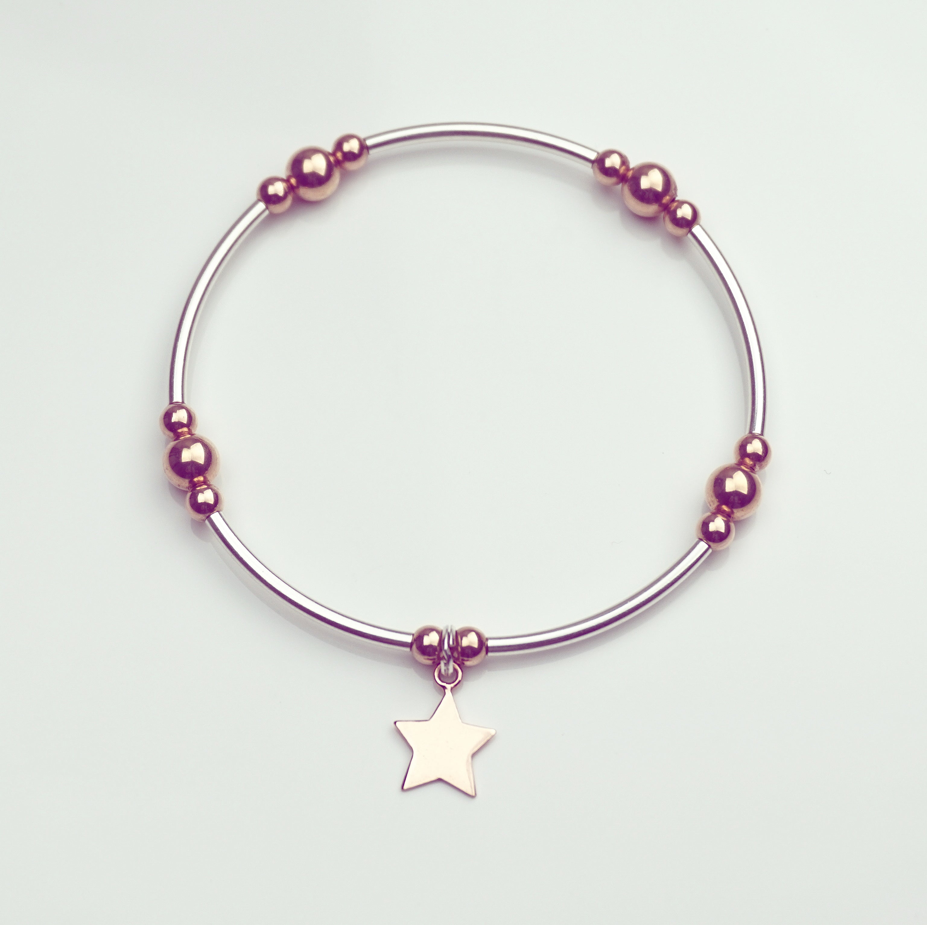Rose Gold Plated Star charm on a 2mm Sterling Silver Noodle & Rose Gold Filled mix bead bracelet