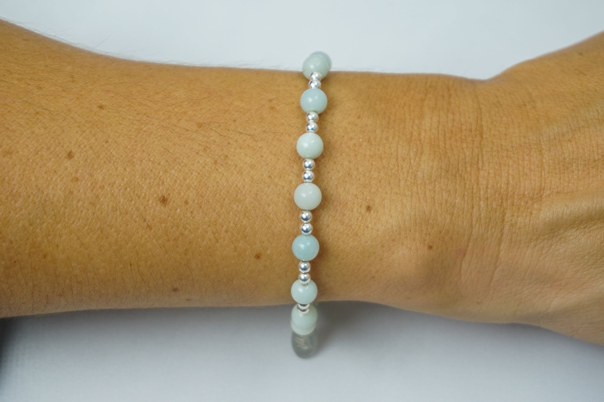 6mm Chinese Amazonite and 3mm Sterling Silver mix bead bracelet