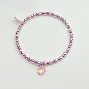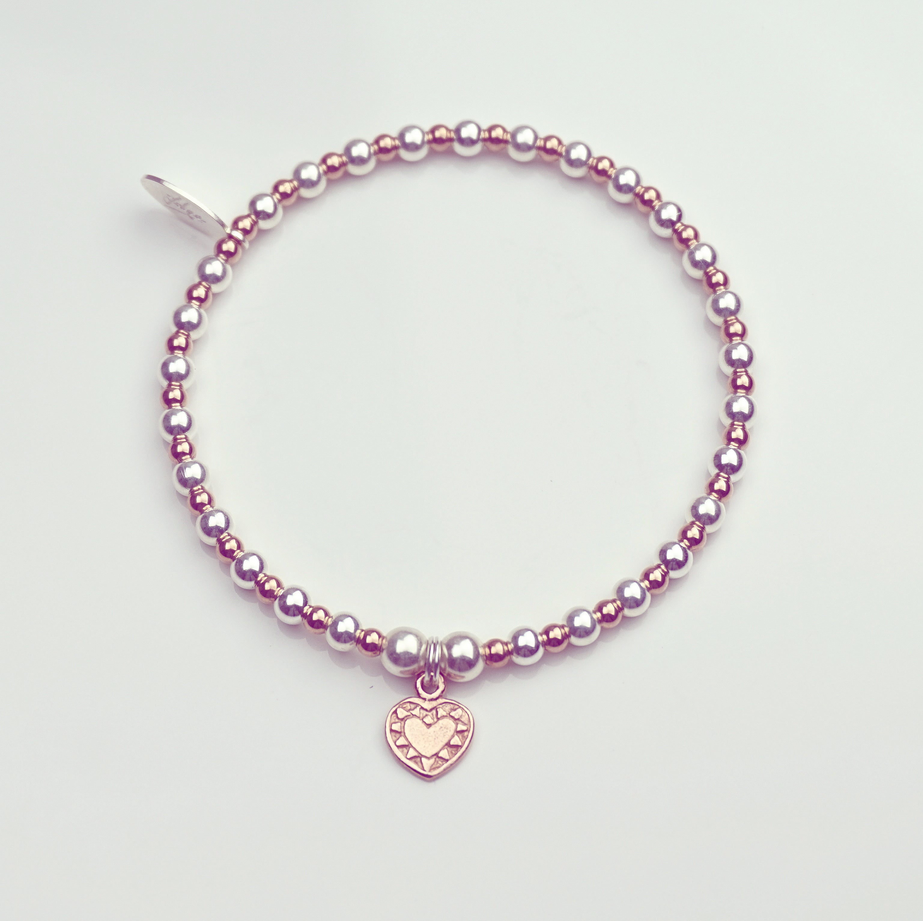 Small Rose Gold Plated Heart charm on a 4mm Sterling Silver & 3mm Rose Gold Filled bead bracelet