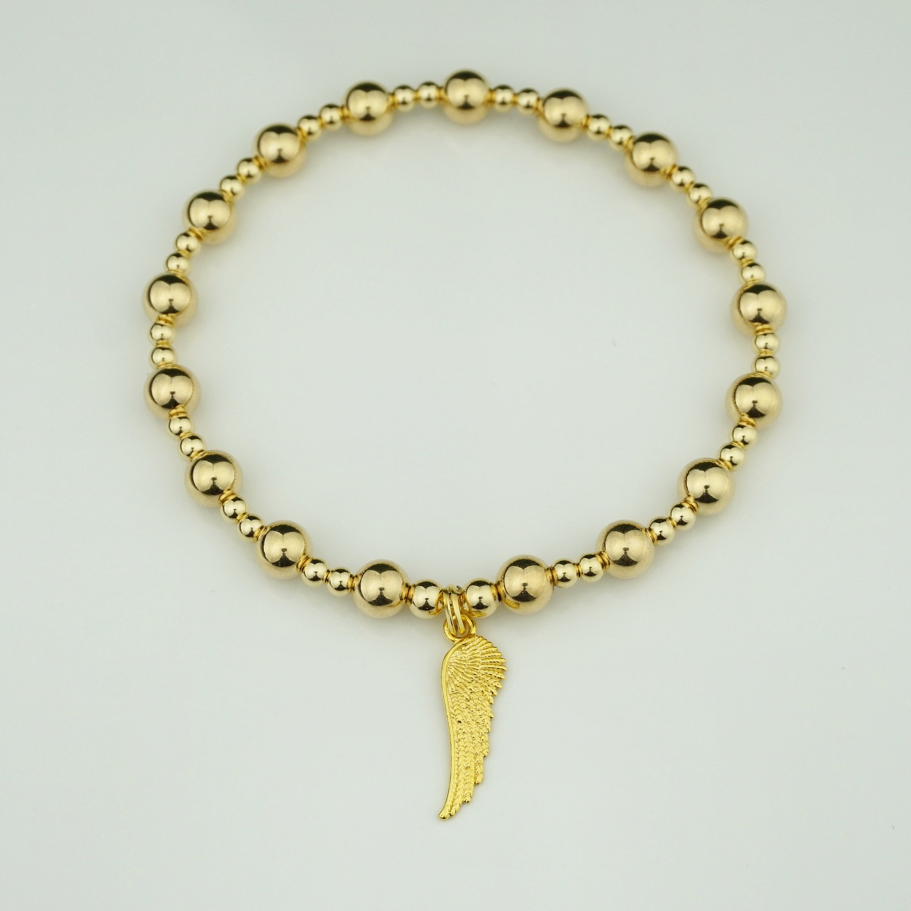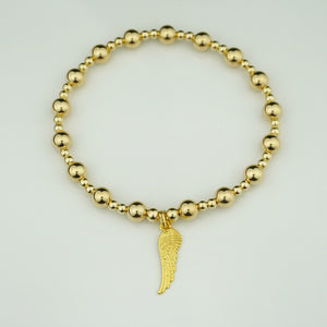 Yellow Gold Plated Angel Wing Charm on a 6mm and 3mm mix Yellow Gold Filled bead bracelet