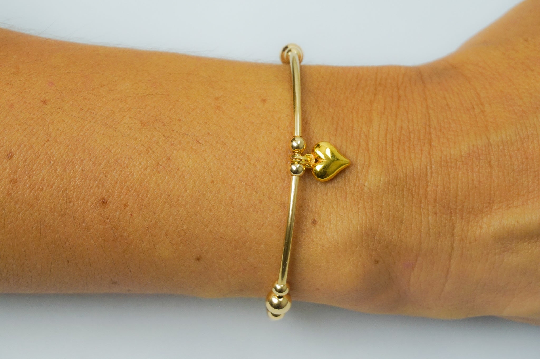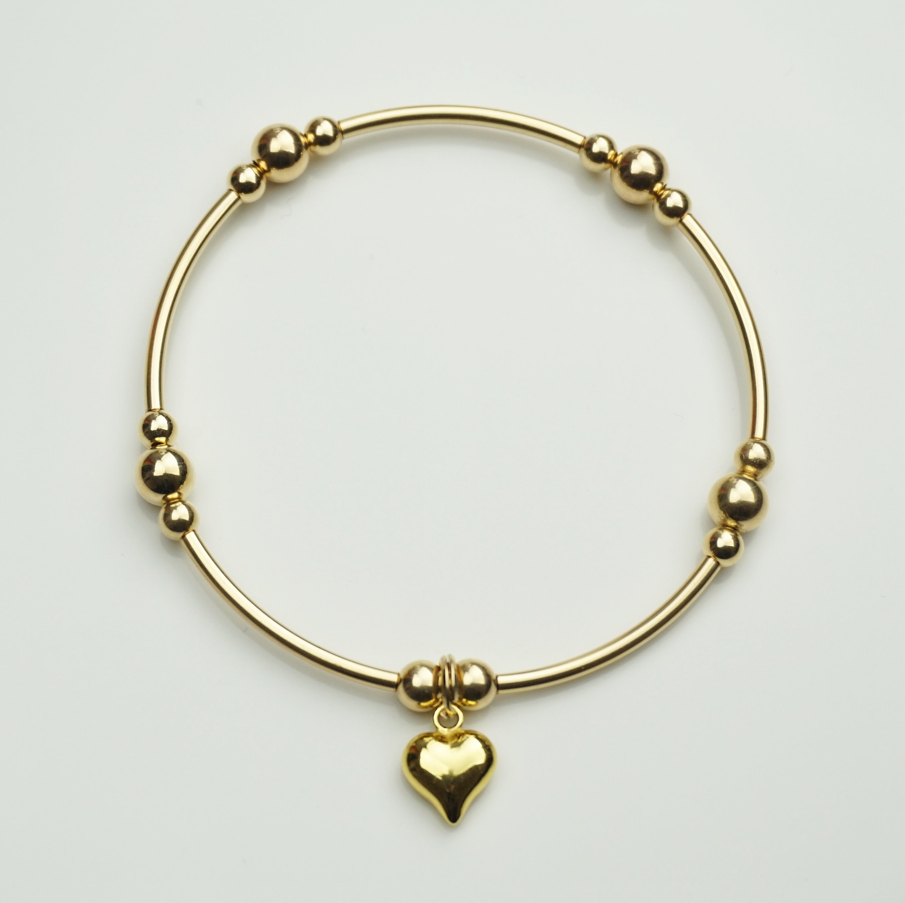 Yellow Gold Plated Puff Heart on a Yellow Gold filled noodle and bead bracelet