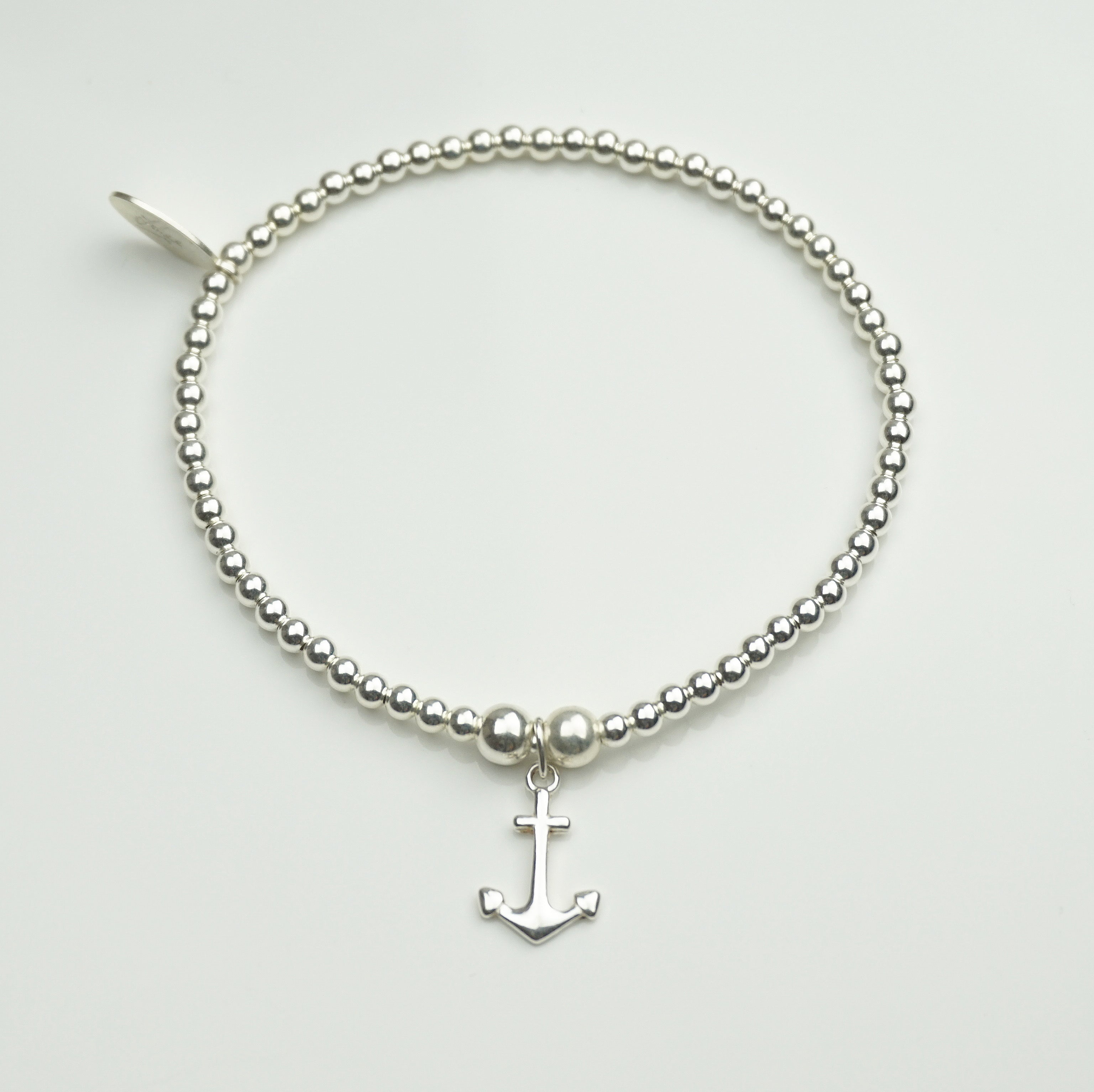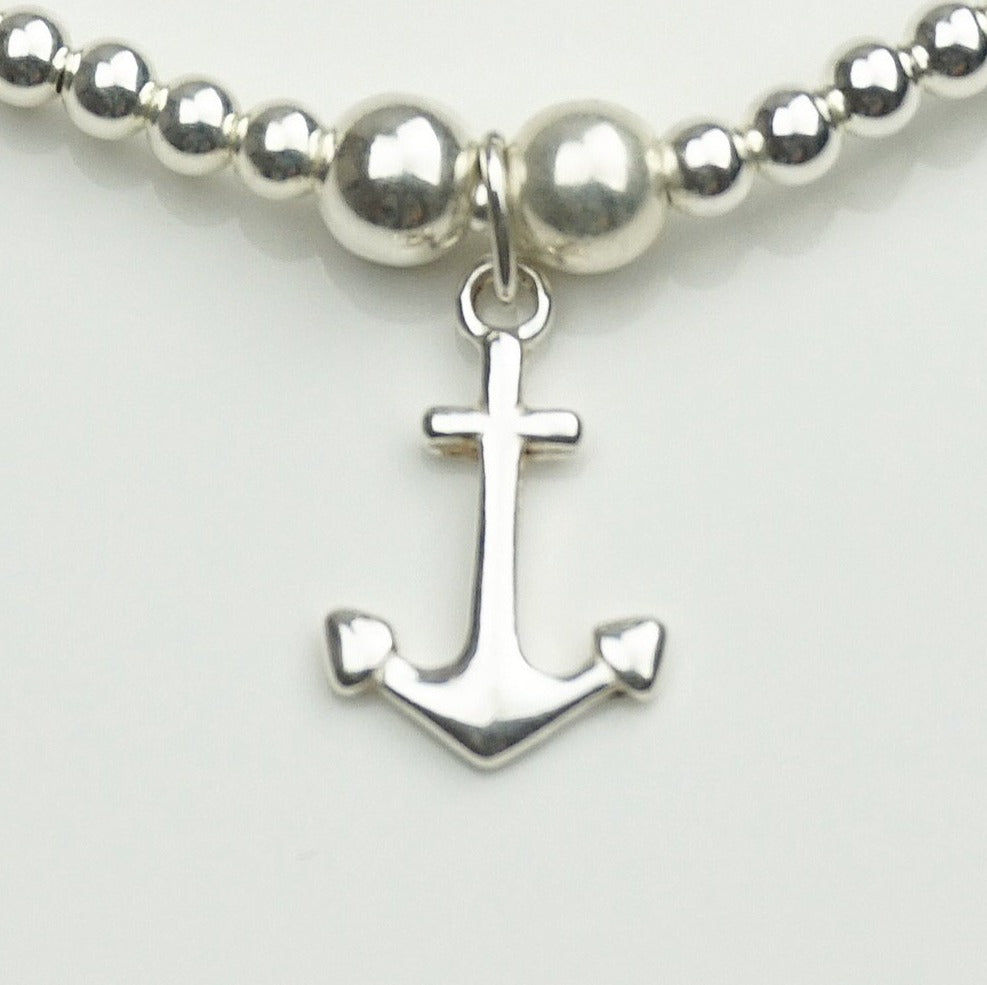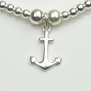 Anchor charm on a 3mm Sterling Silver bead bracelet