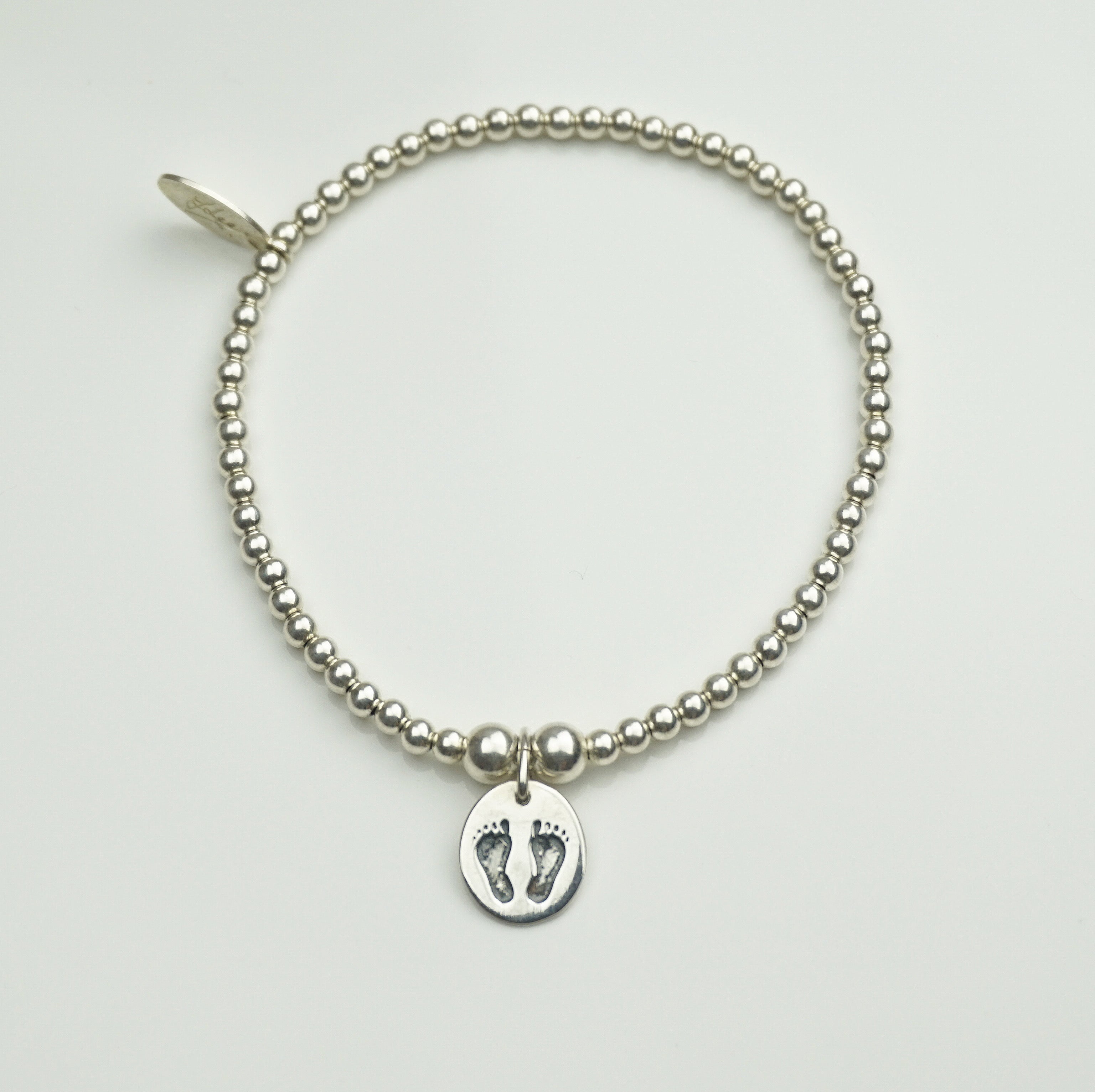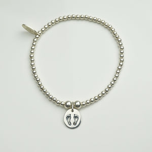 Foot Print charm on a 3mm Sterling Silver bead bracelet