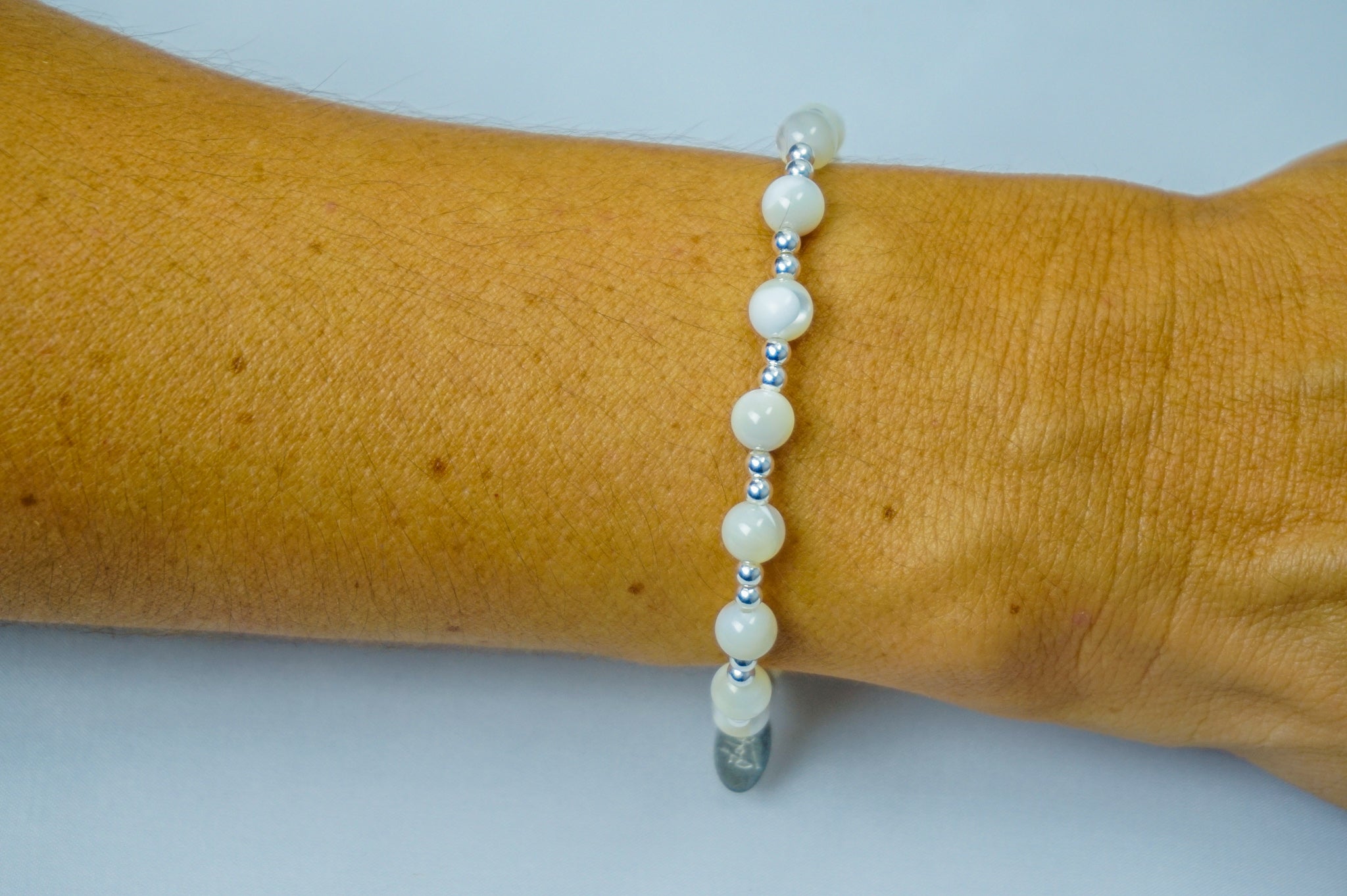 6mm Mother of Pearl and 3mm Sterling Silver Mix bead bracelet