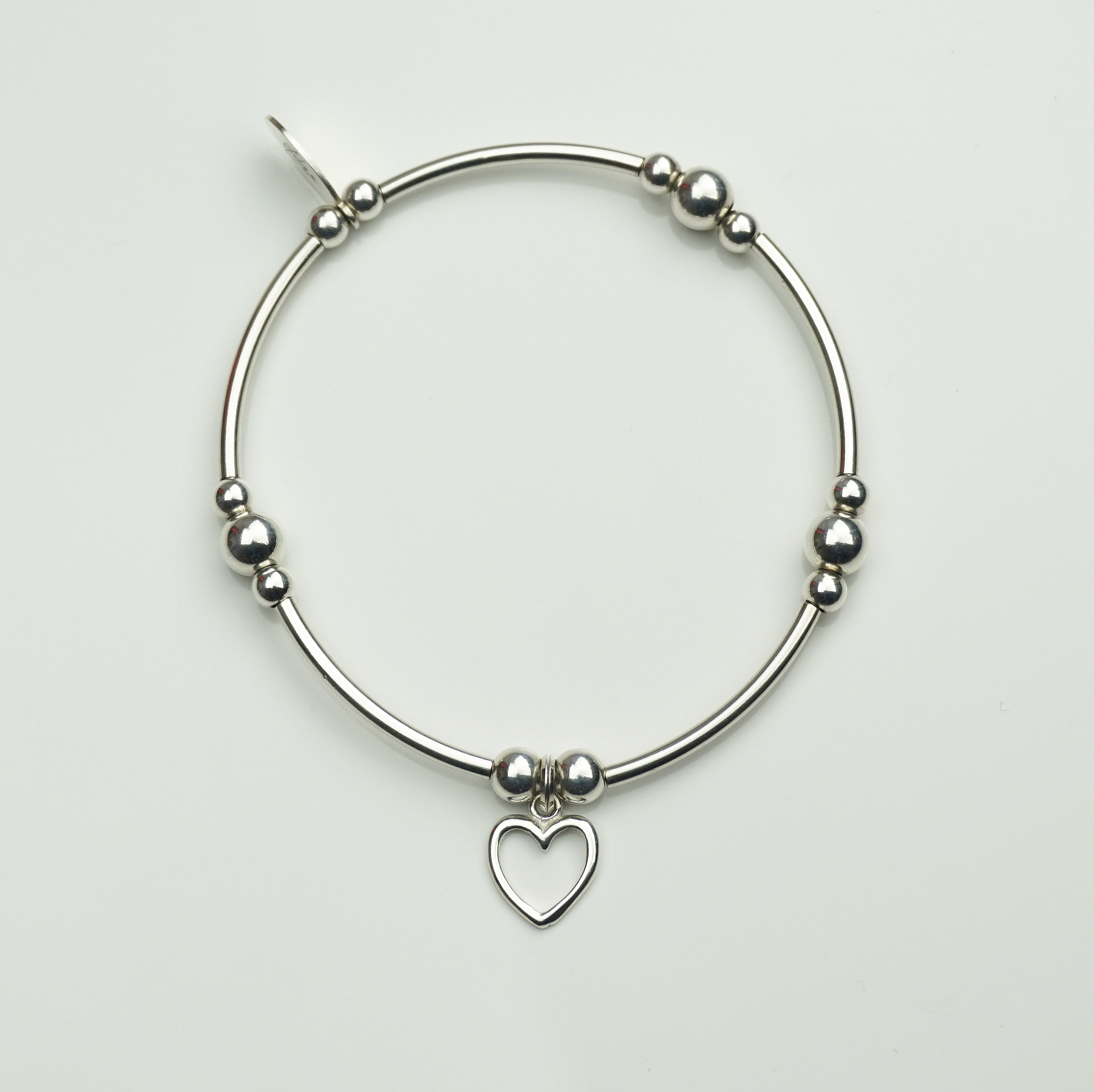 Open Heart Charm on a 2mm Noodle and bead bracelet