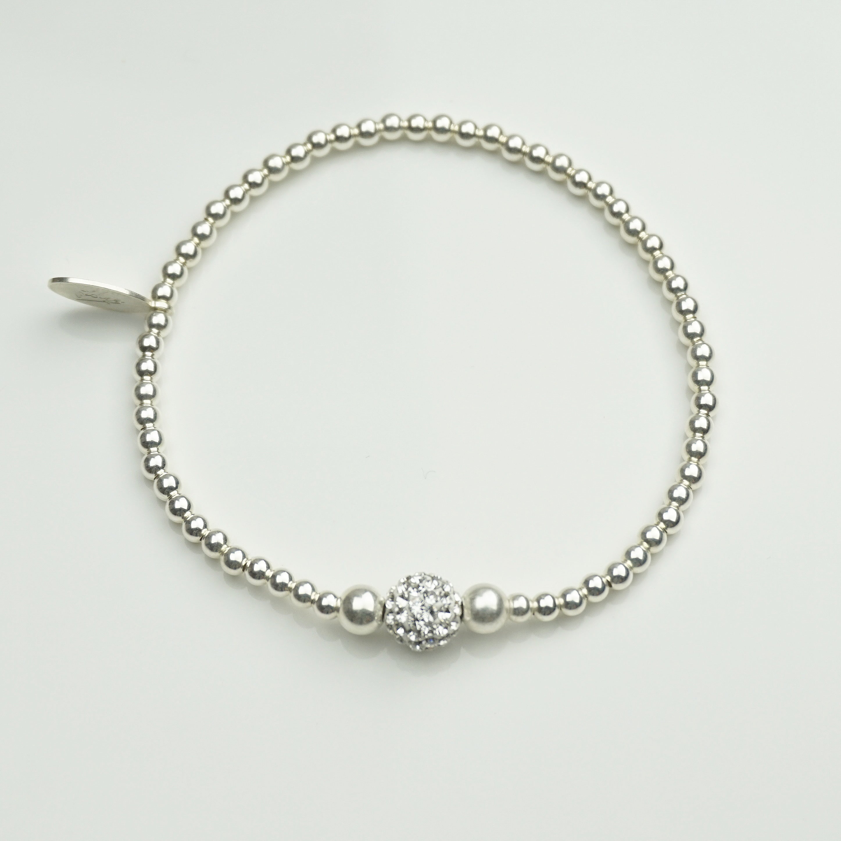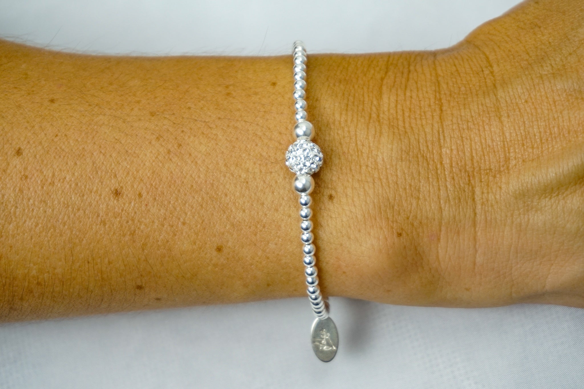 Shamballa Ball on a 3mm Sterling Silver bead bracelet