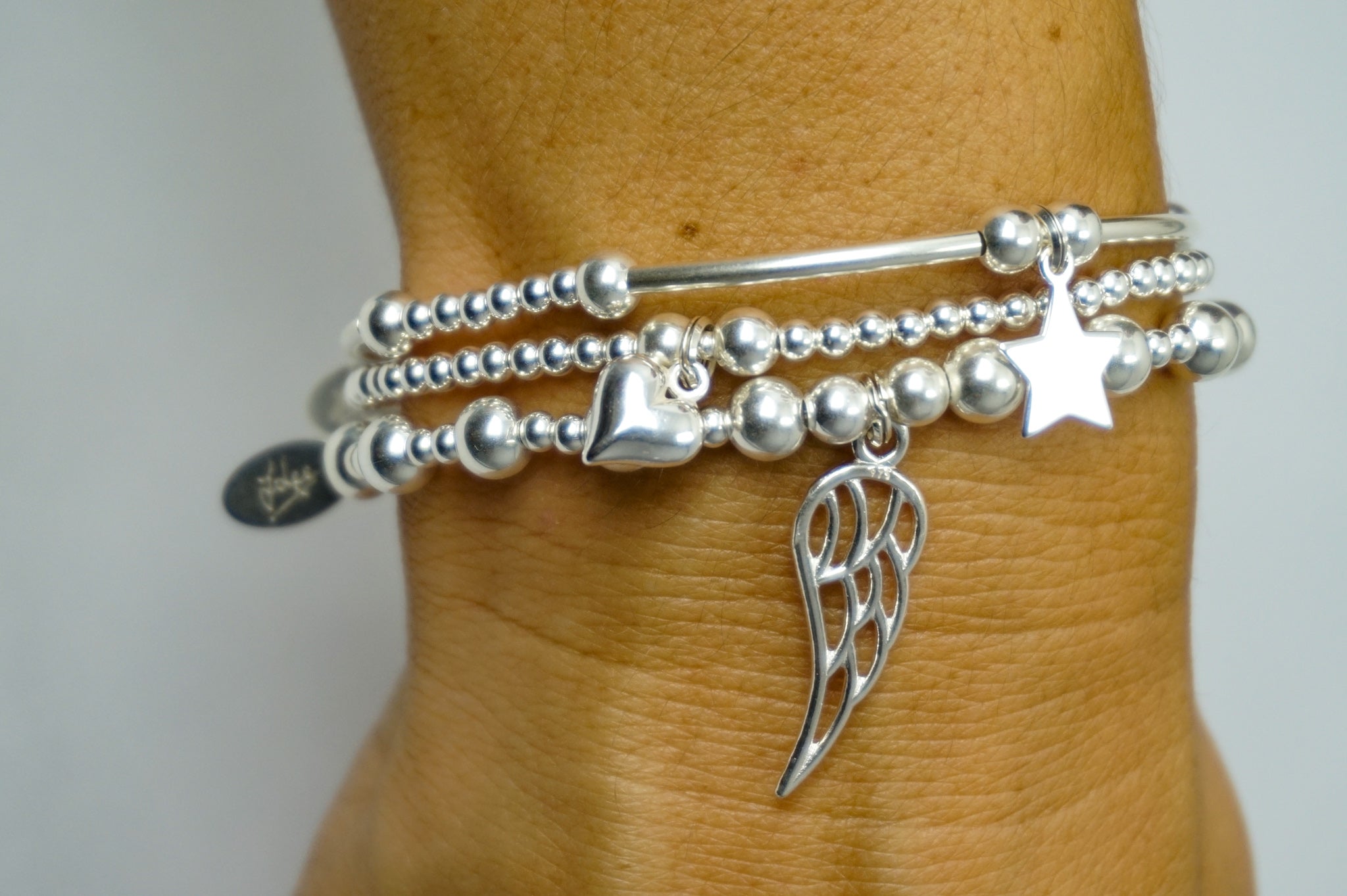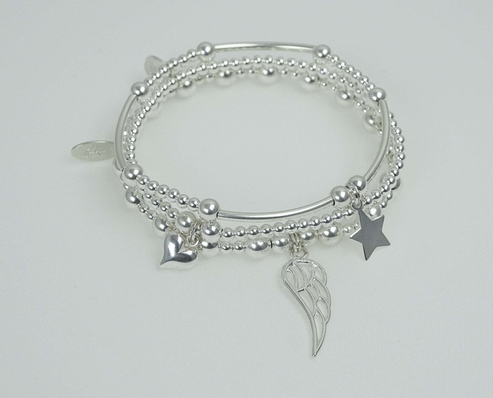 Angel Wing charm on a 6mm & 3mm Sterling Silver bead bracelet