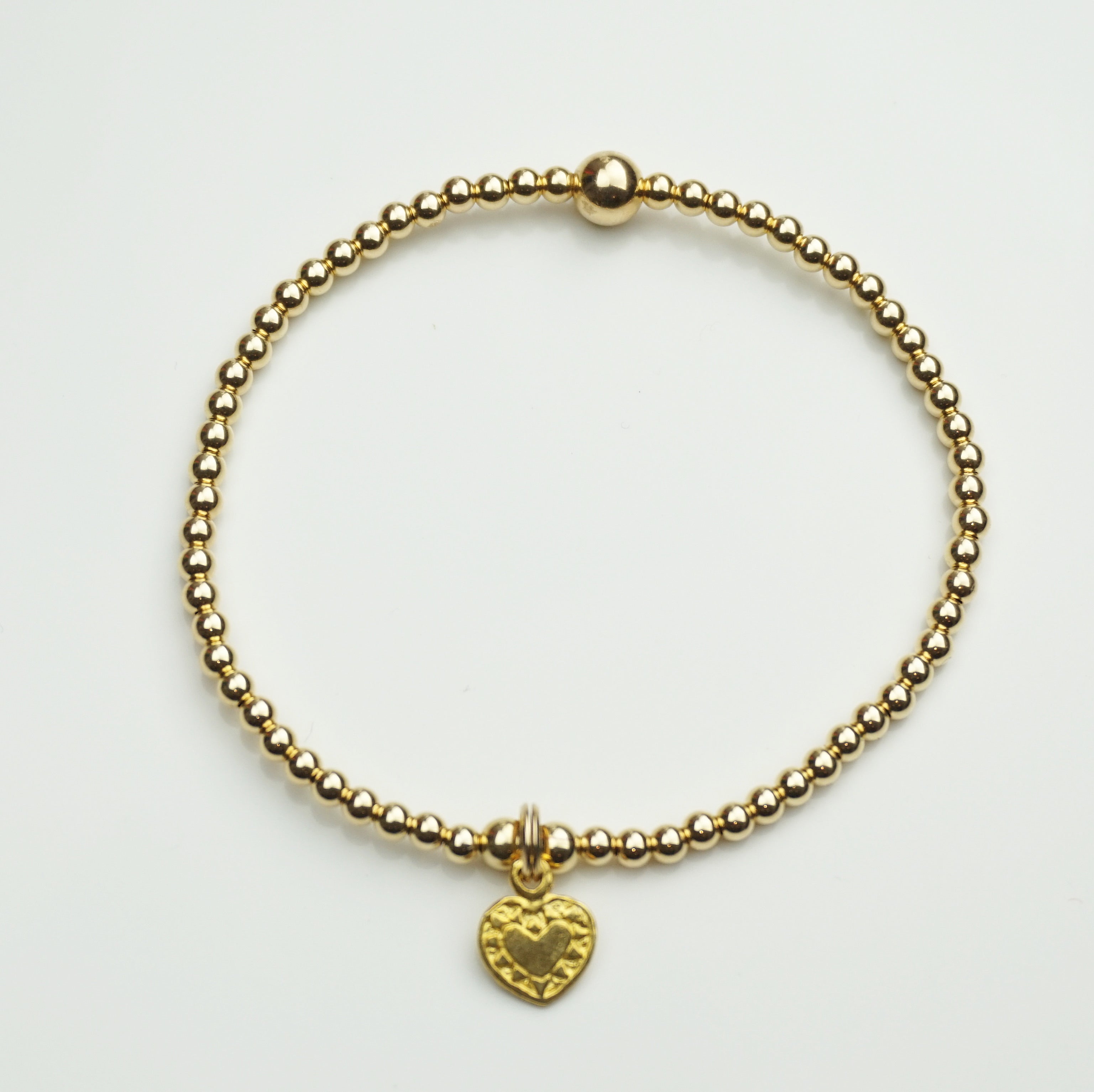 Yellow Gold Plated Heart charm on a 3mm Yellow Gold Filled bead bracelet